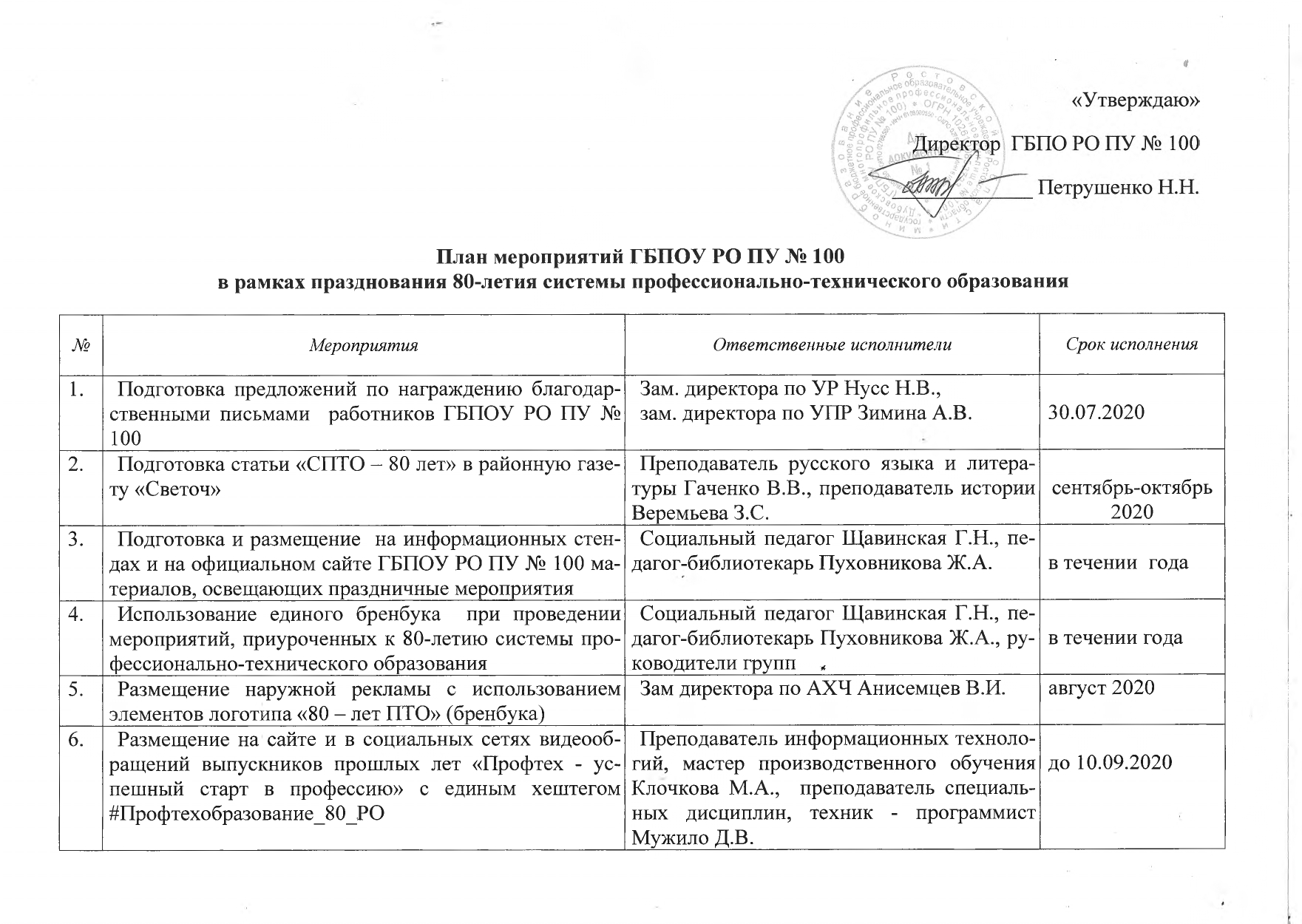 80 лет профтехобразованию Обращение выпускников Обращение выпускников Арт-объект ГБПОУ РО ПУ №100 Я на практике! ГБПОУ РО ПУ № 100 Урок профориентации Путевка в жизнь Назад Вперёд