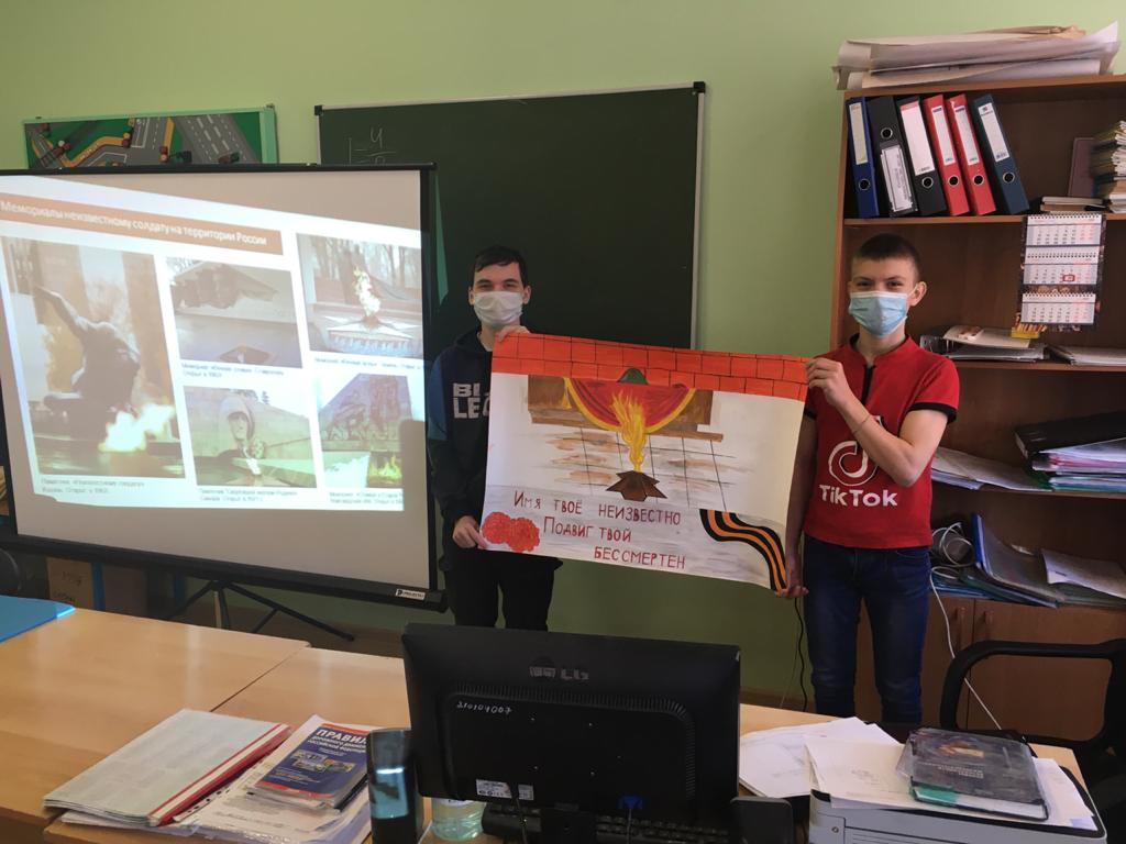 03 Декабря 2020 года обучающиеся ГБПОУ РО ПУ №100 приняли участие во Всероссийском уроке памяти, посвященном Дню Неизвестного Солдата. Посмотрели видео, ролик; прошли тематический онлайн – тест с дальнейшим размещением итогового результата в личных аккаунтах.