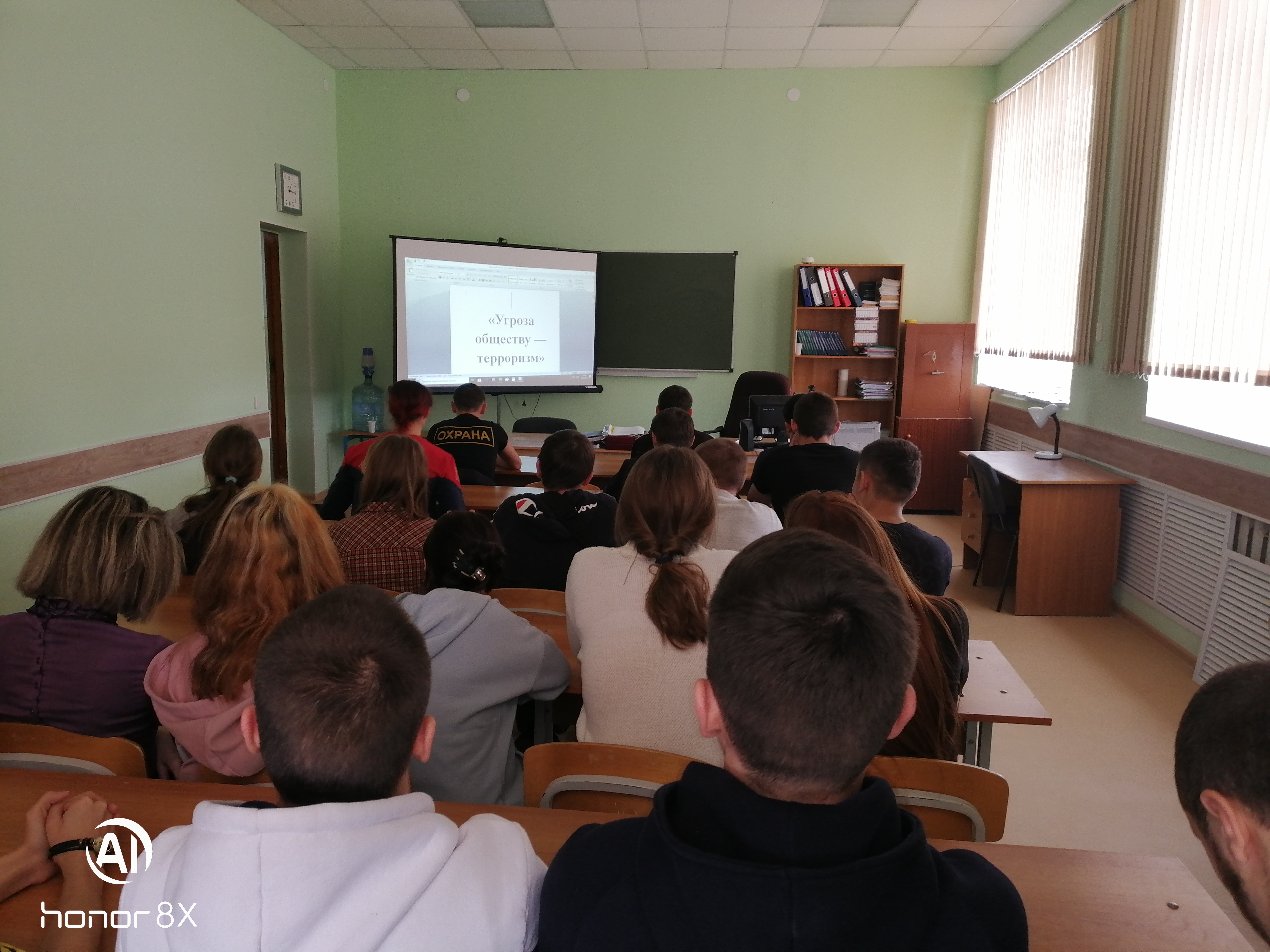 «Угроза общества – терроризм» 29 января 2020 года в ГБПОУ РО ПУ № 100 была проведен классный час, посвященный антитеррористической профилактики «Угроза общества – терроризм». Назад Вперёд